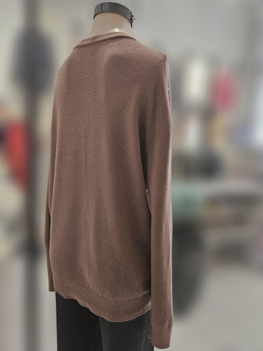 Cuello redondo, mangas largas y terminaciones acanaladas. Calce recto.